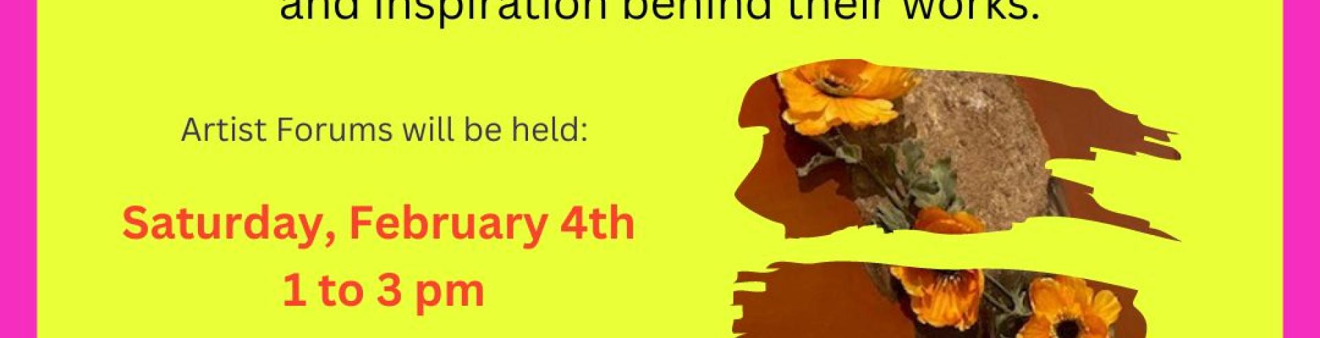 Visitors are invited to join select artists at a forum for Stereotype Smash. This event will allow up to a dozen artists to discuss their art and discuss the meaning and inspiration behind their Stereotype Smash entries. Light refreshments.