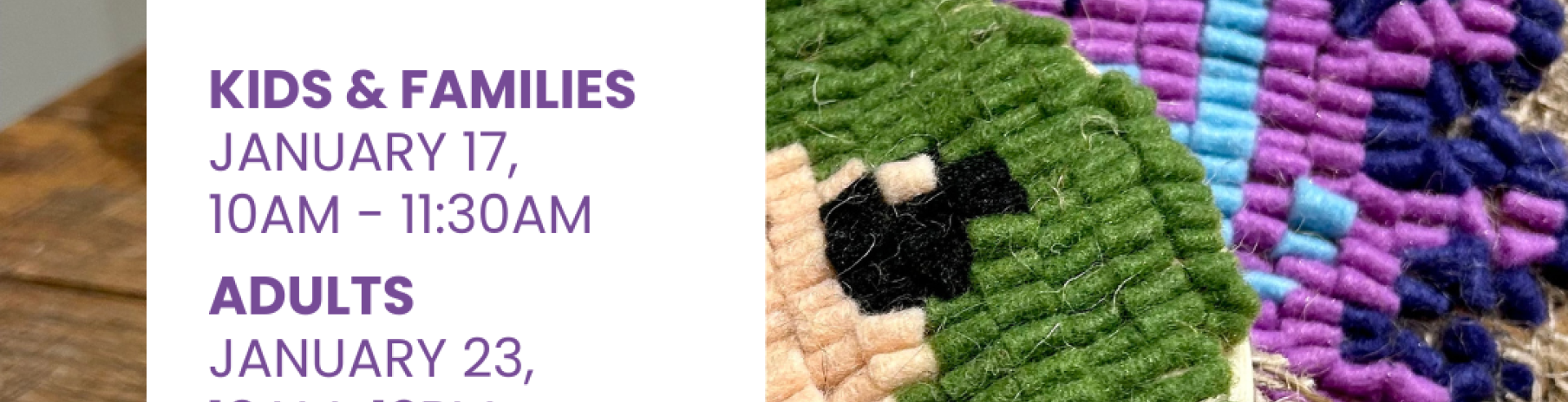 Participate in our upcoming exhibit “Reflections of Ourselves”, with a private group tour, followed by an age-friendly rug hooking workshop. Take inspiration from 19th century North American techniques to learn this tried-and-true skill to turn fibre scraps into your own “Reflections of Ourselves” piece of art. Add it to the exhibit or take it home.